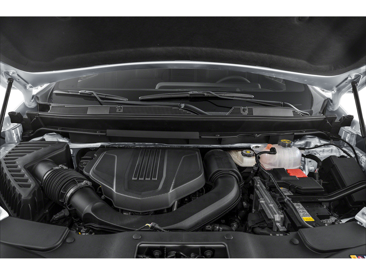 1st & 2nd Row All-Weather Floor Liners (LPO), 3rd Row All-Weather Floor Liner (LPO), 3rd row seats: split-bench, 4-Way Manual Front Passenger Seat Adjuster, 4-Wheel Disc Brakes, 6 Speakers, 6-Speaker Audio System Feature, 6-Way Manual Driver Seat Adjuster, ABS brakes, Air Conditioning, Alloy wheels, AM/FM radio: SiriusXM with 360L, Apple CarPlay/Android Auto, Auto High-beam Headlights, Automatic temperature control, Brake assist, Bumpers: body-color, Compass, Delay-off headlights, Driver door bin, Driver vanity mirror, Dual front impact airbags, Dual front side impact airbags, Electronic Stability Control, Emergency communication system, Engine Block Heater, Exterior Parking Camera Rear, Floor Liner Package (LPO), Four wheel independent suspension, Front anti-roll bar, Front Bucket Seats, Front Center Armrest, Front dual zone A/C, Front reading lights, Fully automatic headlights, Heated door mirrors, Heated front seats, Heated steering wheel, Illuminated entry, Low tire pressure warning, Molded Splash Guards, Navigation System, Occupant sensing airbag, Outside temperature display, Overhead airbag, Overhead console, Panic alarm, Passenger door bin, Passenger vanity mirror, Power door mirrors, Power Liftgate, Power steering, Power windows, Preferred Equipment Group 1LS, Premium Cloth Seat Trim, Radio data system, Radio: 17.7 Diagonal Display, Rear air conditioning, Rear anti-roll bar, Rear reading lights, Rear window defroster, Rear window wiper, Remote keyless entry, Security system, SiriusXM w/360L, Speed control, Speed-sensing steering, Split folding rear seat, Spoiler, Steering wheel mounted audio controls, Tachometer, TBD Axle Ratio, Telescoping steering wheel, Tilt steering wheel, Traction control, Trip computer, Turn signal indicator mirrors, Variably intermittent wipers, Voltmeter, Wheels: 18 Grazen Metallic Machined-Face Aluminum. 20/27 City/Highway MPG